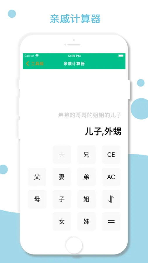 【亲戚计算器】七大姑八大姨统统都能计算,回家再也不会因为叫错人了而烦恼了。