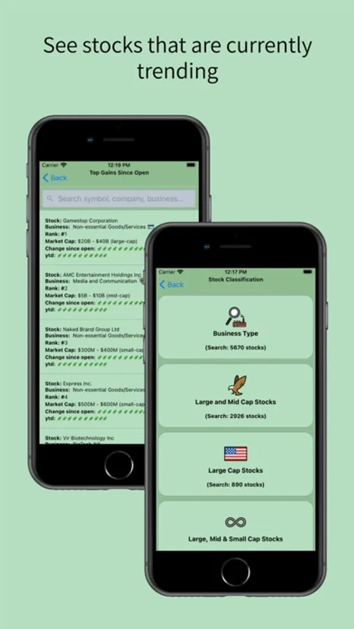 Visually explore the stock market via a variety of classifications, categories and easy to visualize reports. Explore anticipated earnings dates, search by business type, add stocks to your watchlist and much more