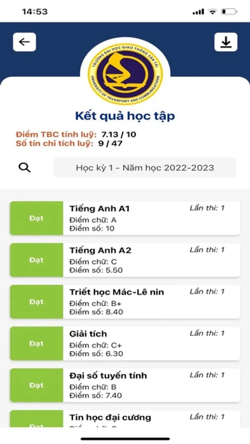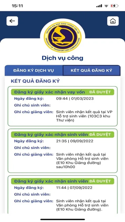 Sinh viên trường có thể xem thời khoá biểu lịch học, bảng điểm, đăng ký một số dịch vụ công, ký túc xá
