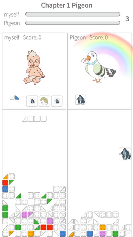 Brain Brick is an elegant puzzle game. Colorful squares and triangles will fall from the sky, and you need to arrange them in a proper manner in limited time. Your brain power and reflection speed will be challenged. Are you ready to challenge the dove, the horse, and even the most advanced and horrible robot RBT06? Be courageous, you are the last hope of human kind in this Brain Brick match.