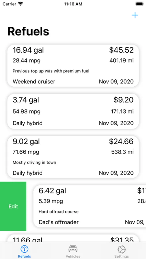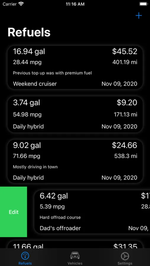 - Add optional notes to each refueling entry, helping you remember specific driving conditions or techniques.