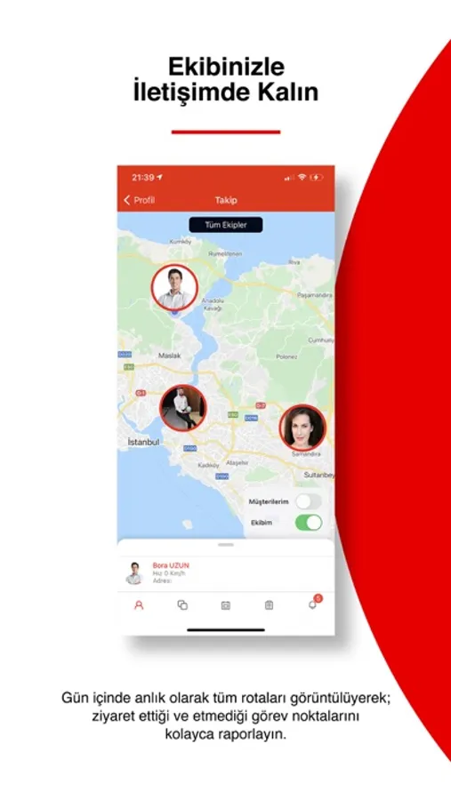 Herhangi bir GPS cihazına ihtiyaç duymadan konum verileri üzerinden analizler yaparak saha ekiplerini gerçek zamanlı takip eden mobil uygulamadır.