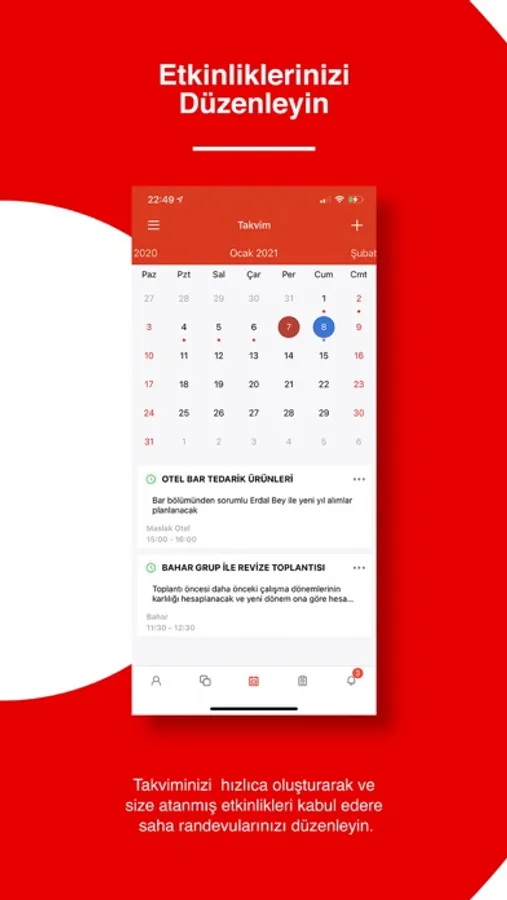 • Saha çalışanlarının günlük takvimleri, günlük toplantıları ve müşteri ziyaretleri raporlanır.