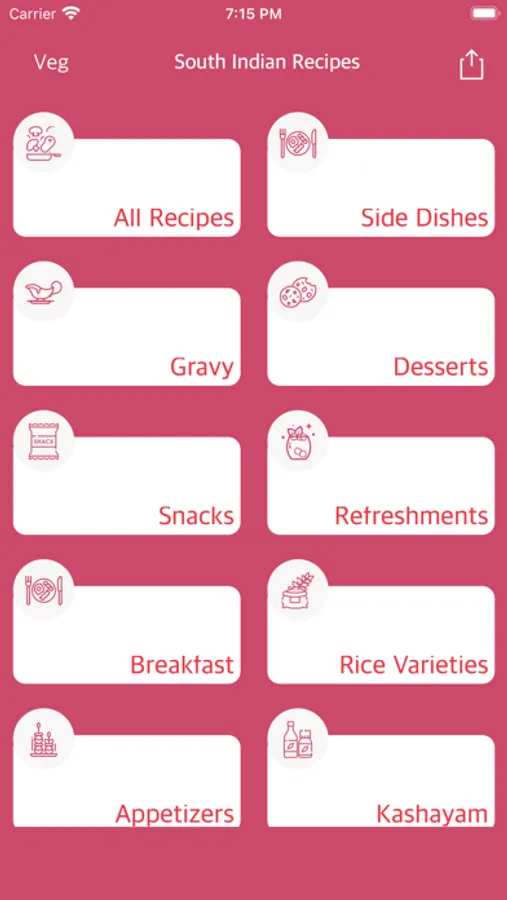 Quickly search for your recipes by ingredients, And neat display of our favourite South Indian dishes with images. Option to bookmark your favourite recipe. Choose your recipe Vegetarian or Non Vegetarian