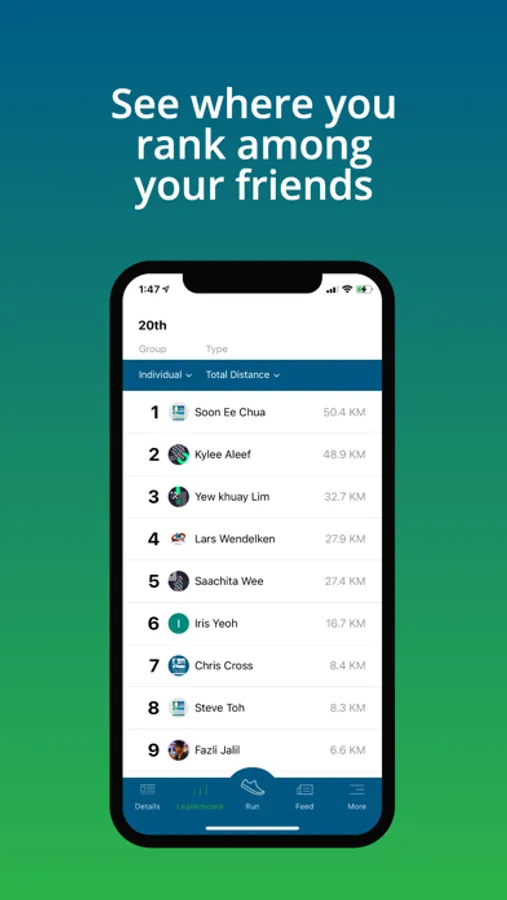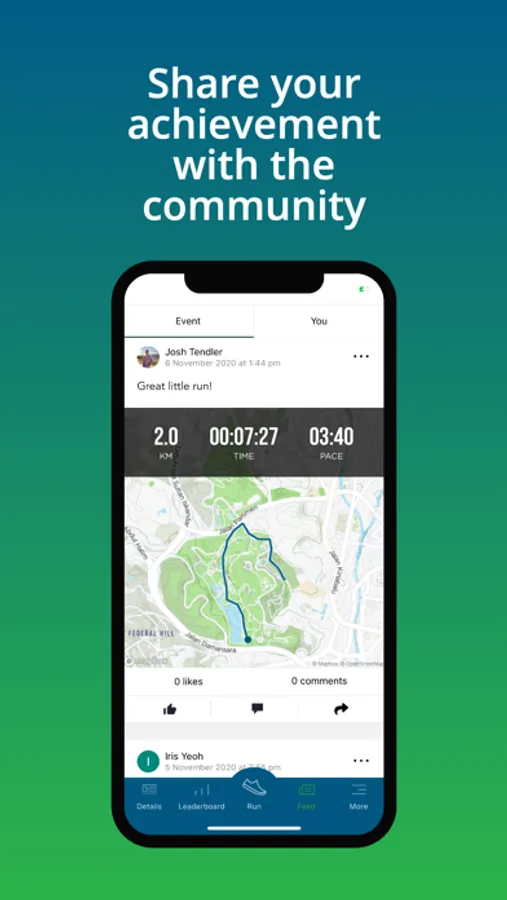 FEED: After your run, you will be prompted to share your activity to the feed. Add a caption and upload photos of your run.