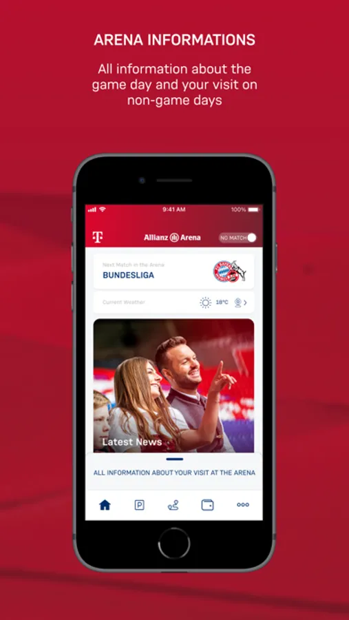 The Allianz Arena app improves your experience even more. On matchdays you can book an in-app parking ticket and navigate yourself trough the arena by using our interactive map. With the mobile ticket in the Arena Wallet, you can get into the stadium easily and conveniently.