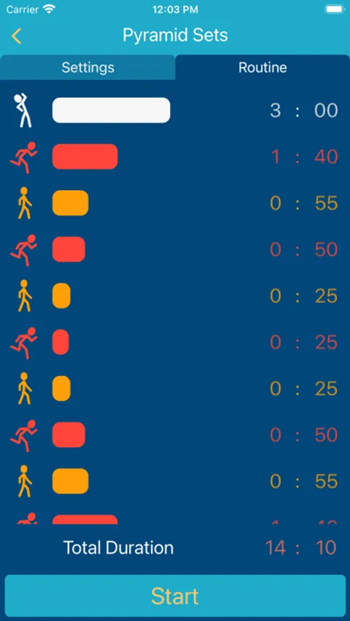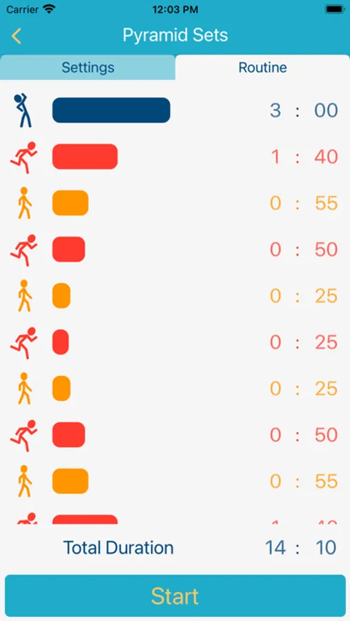 Pyramid Sets are similar to Flat Sets, but the duration of each Work and Rest set reduces by half with each set up to the halfway point. Once the halfway point is reached the duration doubles in length. Pyramids are ideal for improving running speed.