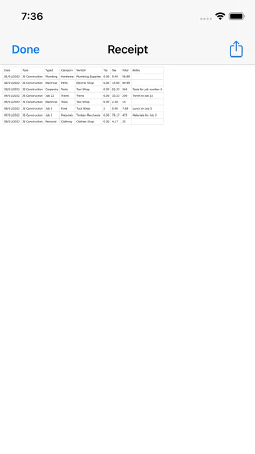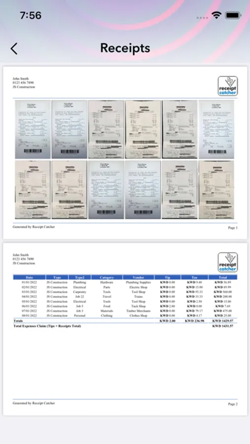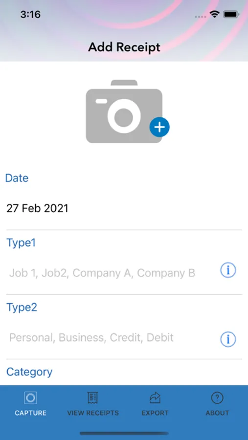 • Categorise your receipt entries by Type 1, Type 2, Category, and Vendor.