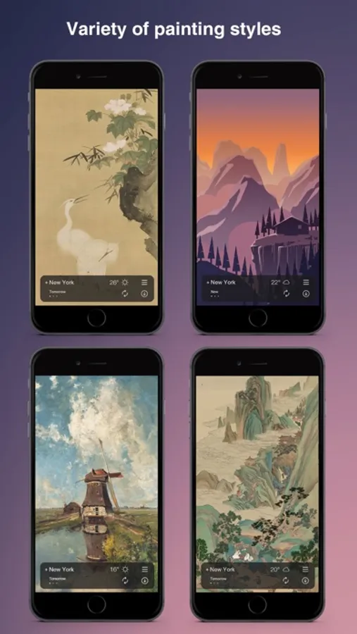 We have selected Paintings of different Styles from Museums and Galleries around the World. It allows you to know the Weather Forecast and also enjoy different World-famous Paintings.