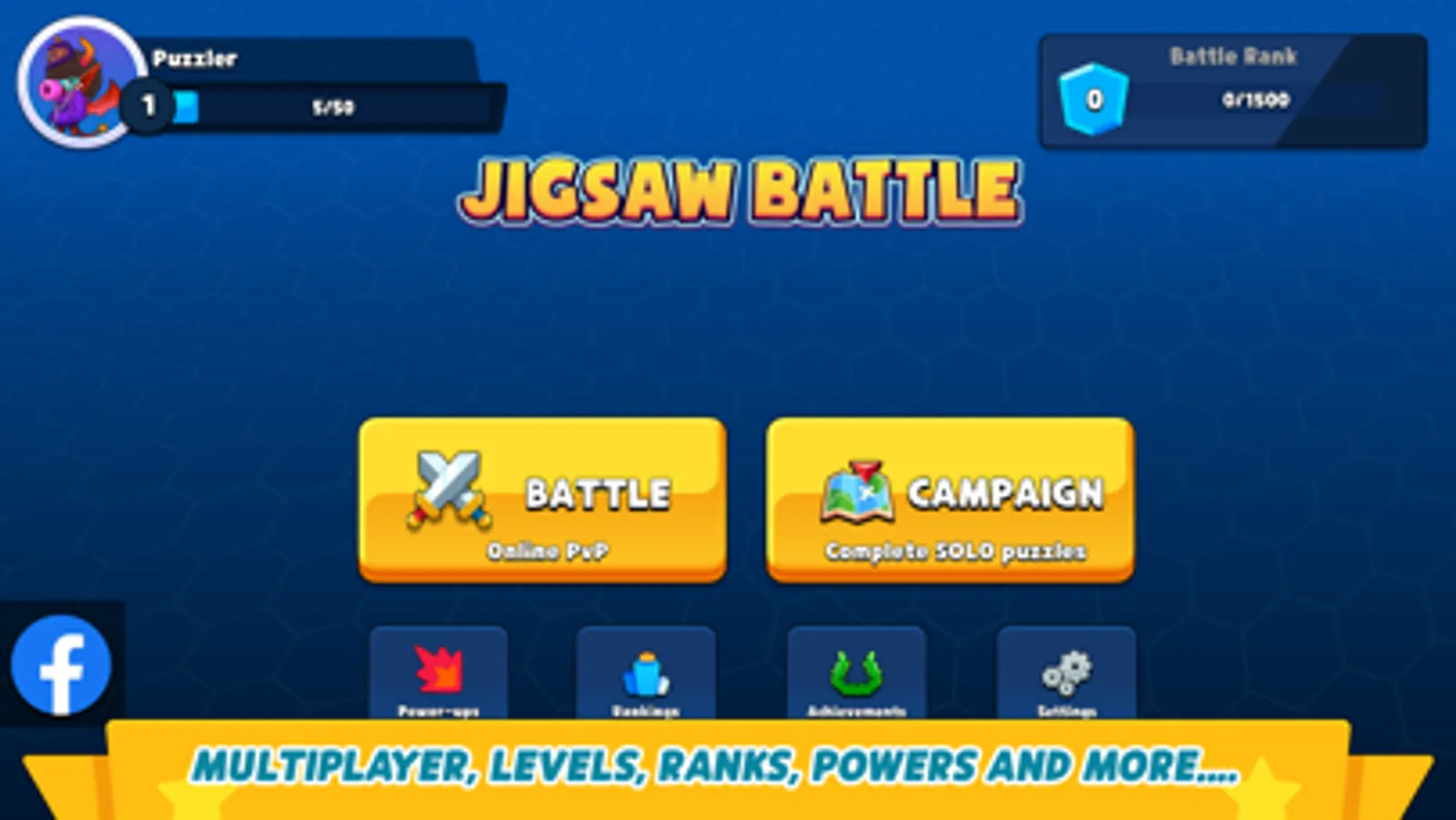 In battle, the one who sees the bigger picture first wins. Jigsaw Battle is a real-time multiplayer puzzle game that tests your reflex and acumen. It is one of the earliest puzzle games you played in your life. The game is the same but the stakes are different now. Play for ranks, levels, power-ups and more importantly, the leader board. Play casually in a 36 block grid or lock horns with an enemy in a tough 80 block grid.