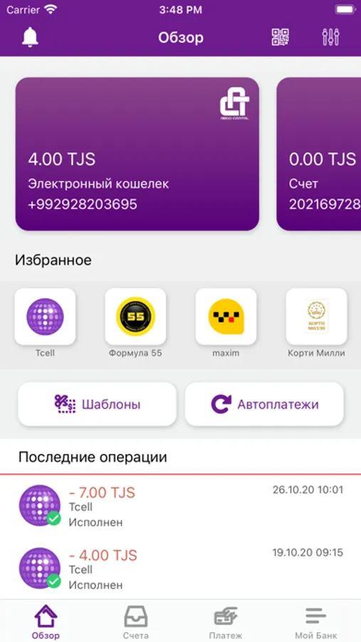 Простой и удобный сервис позволяющий оплачивать услуги мобильных и интернет операторов, телевидения , ЖКХ, совершать переводы между картами,