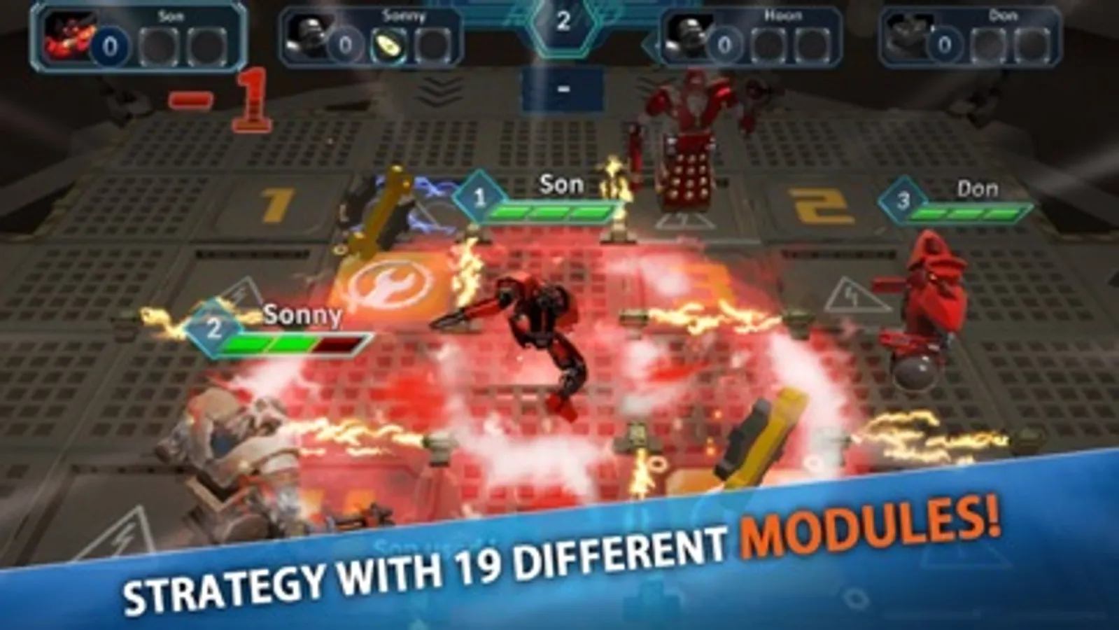 Master the colorful modules to use their special abilities! Apply with various traps in the arena to subdue your opponents with witty strategies! The glory of destruction awaits you!"