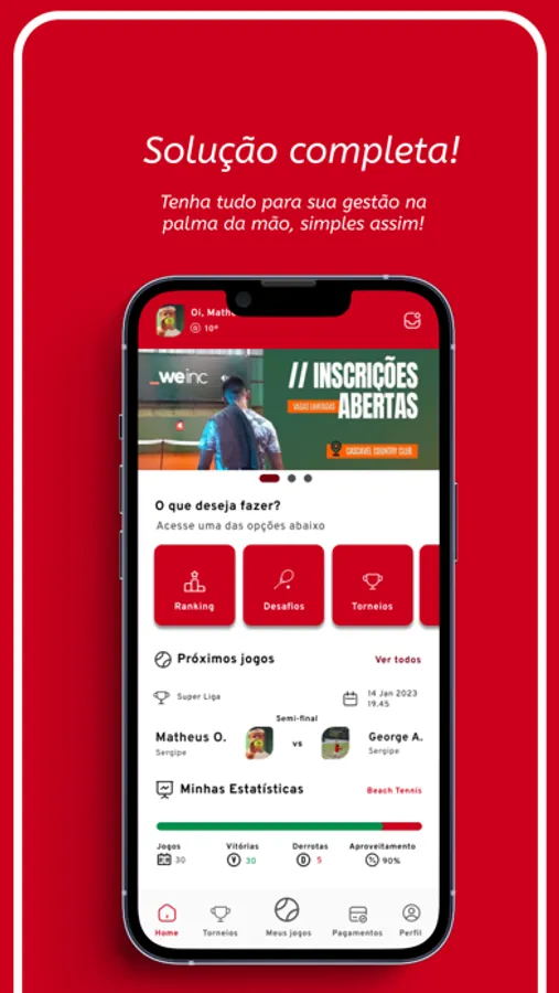 Gestão de Aulas, Clubes e Torneios. Tudo em um só lugar, na palma da sua mão!
