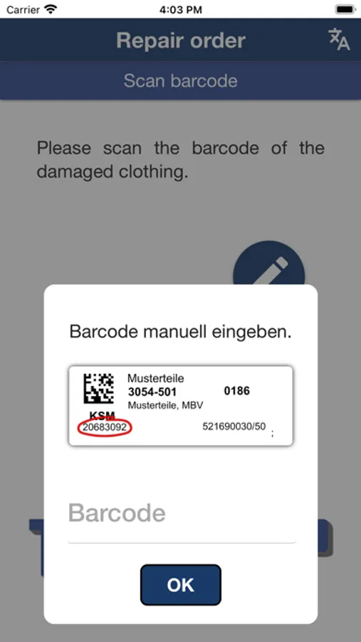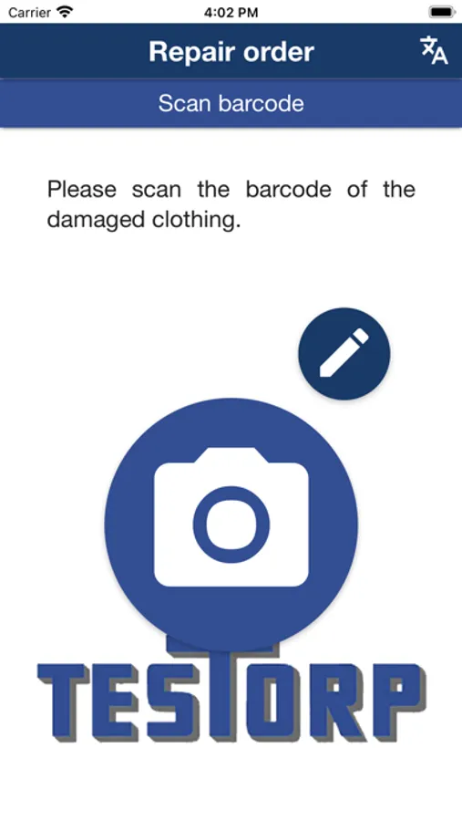 Mit dieser App können Sie als Kunde der Firma Testorp Textilpflege GmbH & Co. KG Reparaturhinweise für ihre Berufskleidungsstücke mitteilen. Scannen Sie den Barcode Ihres beschädigten Wäschestücks und wählen Sie die nötigen Reparaturen aus.