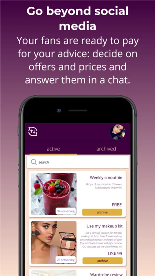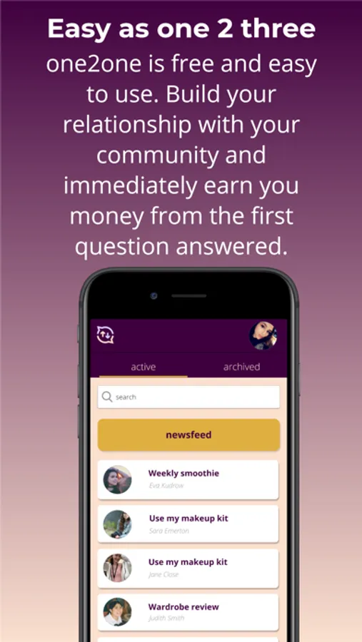 We built one2one to provide quality time between influencers and followers. one2one is a simple communication app that allows influencers and experts to offer advice, personalized content, and coaching of any kind. You will answer requests from your fans through chats and video calls on our mobile-app.