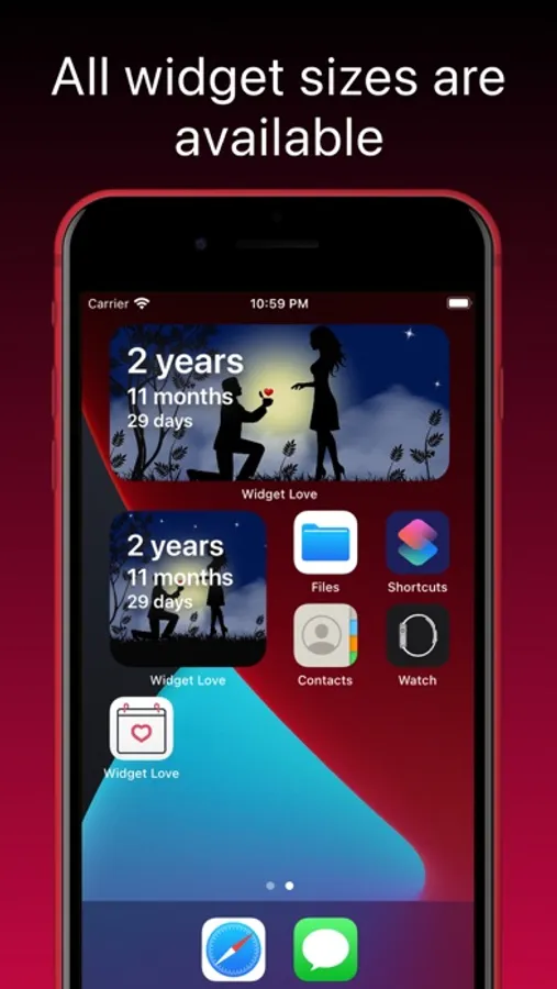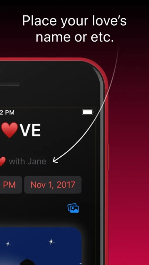 Discover the ultimate way to celebrate your love story with LoveTracker - the personalized widget app for couples. With this app, you can create a beautiful and unique home screen widget to showcase your love. Add custom titles with your partner's name and choose a background picture that perfectly captures your love. Align the time to the corners and keep your love story front and center. Keep track of how many years you've been together, or any other special occasion you want to celebrate. The app's user-friendly interface makes it easy for anyone to create a beautiful and meaningful widget. Share your love story with the world and make your home screen a constant reminder of your love. Download LoveTracker now and start celebrating your love journey today!