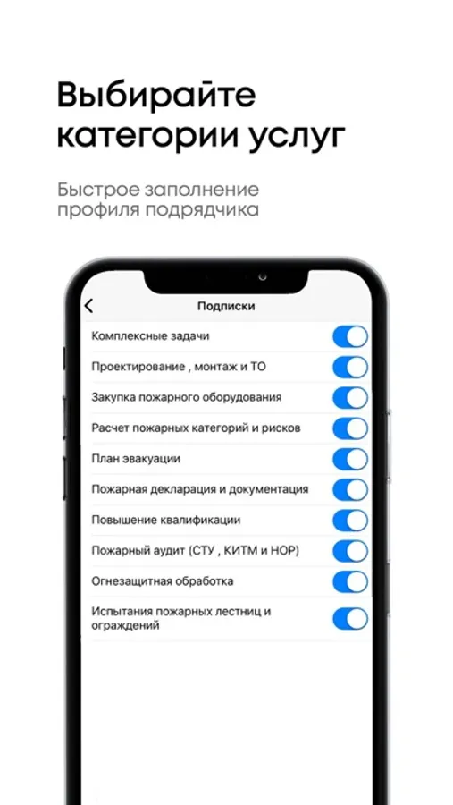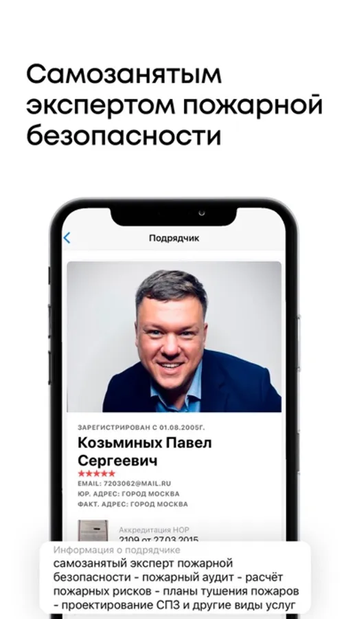 - Для получения заказов, Вам не обязательно быть юридическим лицом, выполняйте заказы как специалист пожарной безопасности. Выберите роль – подрядчик, получайте положительные отзывы и высокий рейтинг. Будьте самозанятым пожарным аудитором-экспертом.