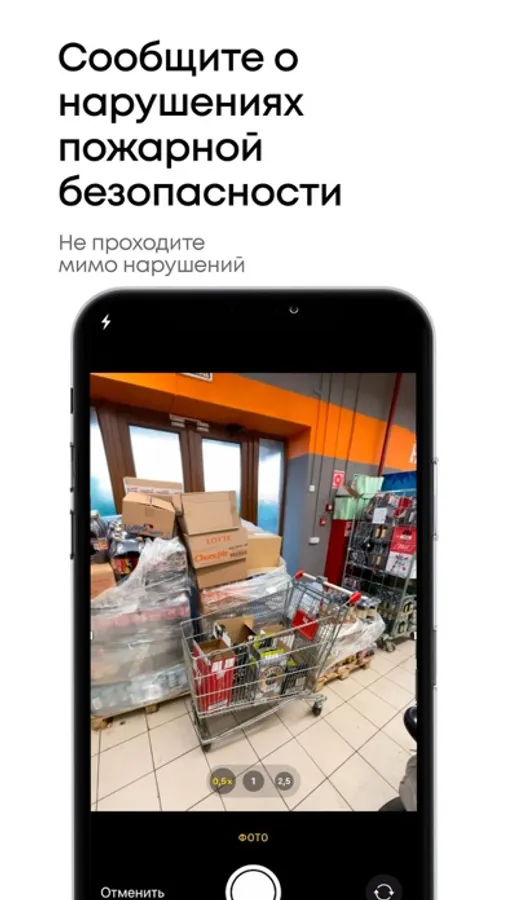 Сервис позволяющий моментально отправить фото жалобу на нарушение требований пожарной безопасности для проверки в отдел государственного пожарного надзора по месту события.