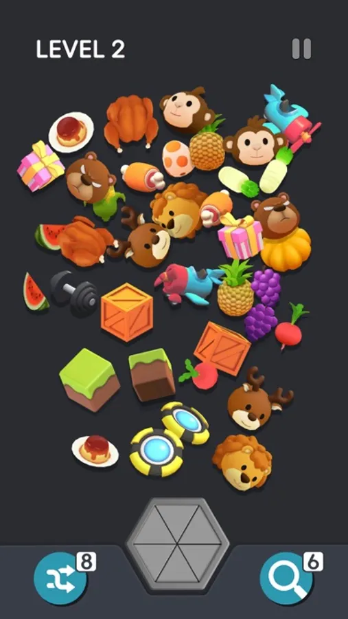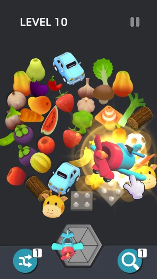 You need to match in pair objects on the ground and pop them all! When you clear a level, you will find new objects to pair. The matching puzzle game game has tons of challenging well-designed levels to train your brain, exercise your logical thinking and memory. It is the best time killer for you!