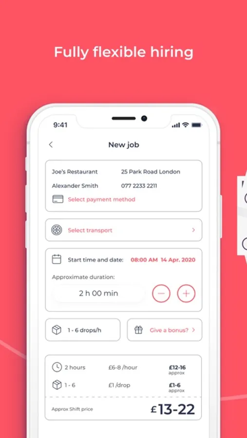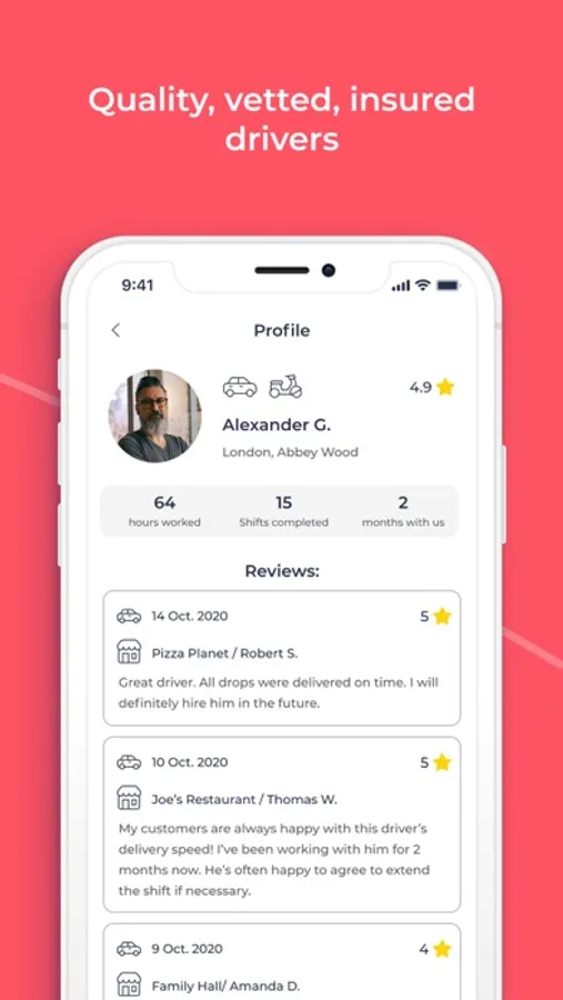 Hire flexible, self-employed delivery drivers for your restaurant or takeaway, whenever you need them, for as little as an hour, at the tap of a button.