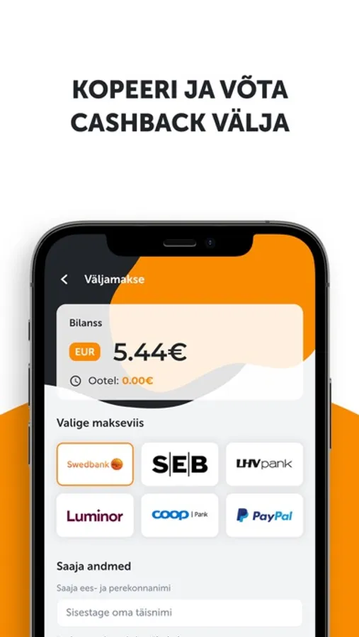 You can withdraw your cashback to your bank account or PayPal account. No hidden fees or commissions.
