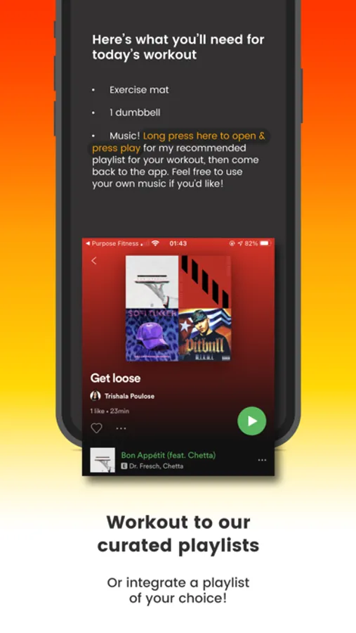- Get access to specially curated workout playlists that you can add to your Spotify account or integrate a playlist of your choice alongside the workouts