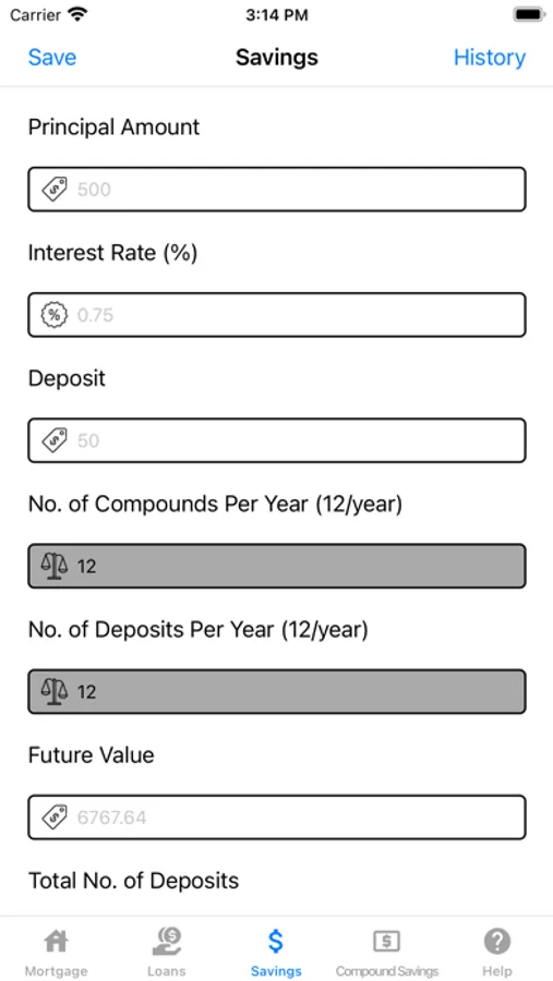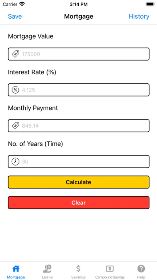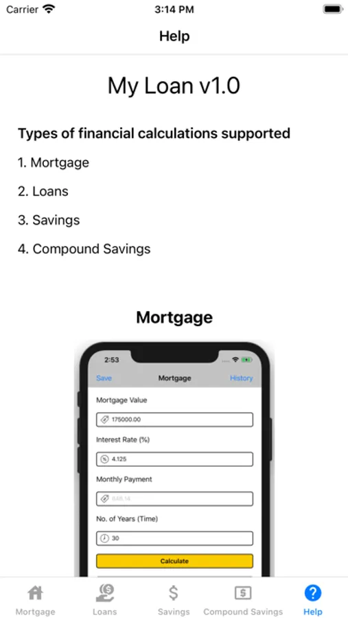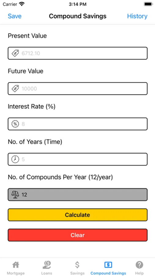 Помимо калькулятора ипотечного кредита, приложение также включает калькулятор сложных процентов, чтобы помочь пользователям определить потенциальную экономию с течением времени. Пользователи могут ввести сумму первоначального вклада, процентную ставку и длительность срока, а приложение рассчитает их будущие сбережения на основе различных частот начисления сложных процентов.