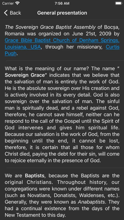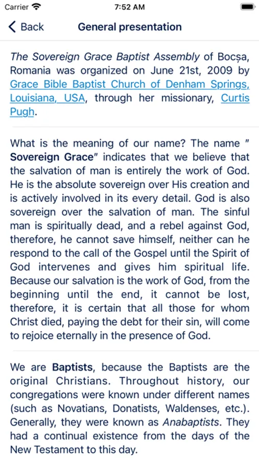 You can learn about the church, our preachers, our doctrines and practices and our works. You can access our hymnal, as well as our library, which contains a multitude of articles and books in different formats. You can easily contact us, find the meeting schedule, the location of the closest mission point and the directions to get there.