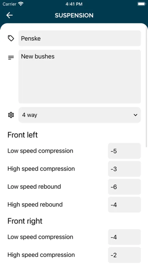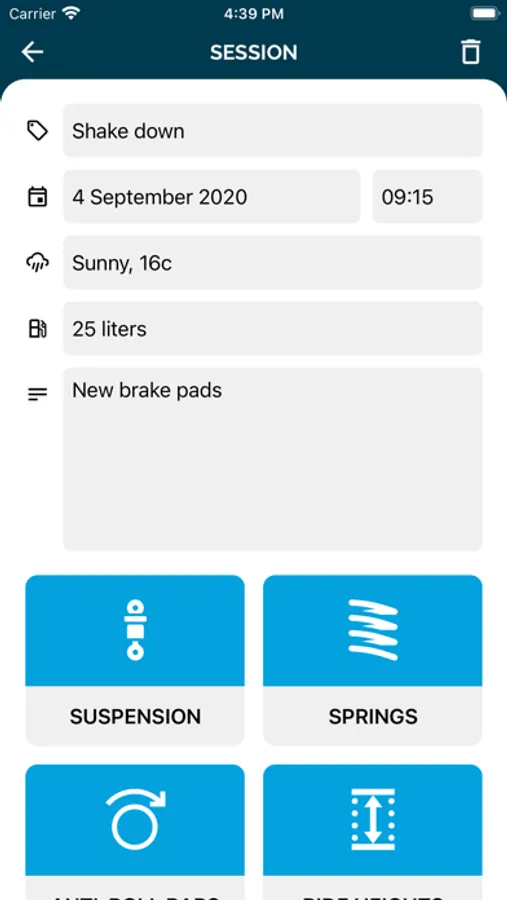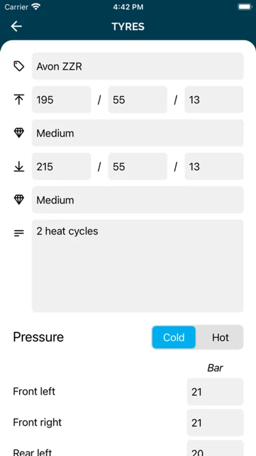 Circuit Settings lets you record all the car setup measurements. Alignment, Shock settings, Corner weights for reference later. Raceshocks.uk is an approved sales and service center for Nitron, Ohlins, Penske, Quantum, TracTive Suspension & Hyperco Springs. We were always being asked for setup help and we needed setup information to before we made any comment. We also saw friends and customers recording data the old fashioned way. All their critical data in a paper file or having to power up a laptop and having to reference it whilst at events. This app will replace that paper file. All alignment, damper settings, tyre type, pressure, aero or ARB settings and more. The App even allows you to record the weather and take a picture for reference of the venue. The data can be copied to a new event/session so repeat entry is not required. Just update an existing session with new data.