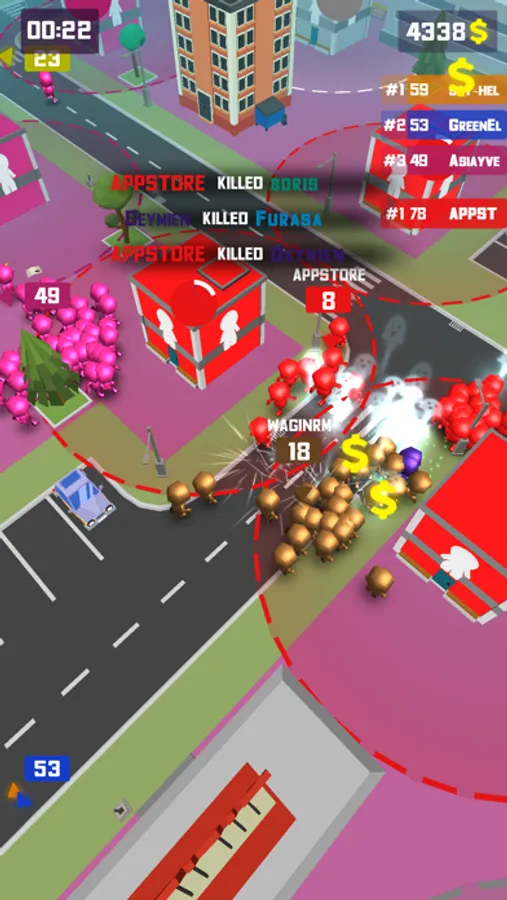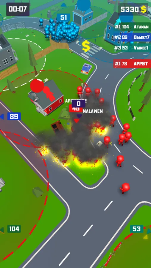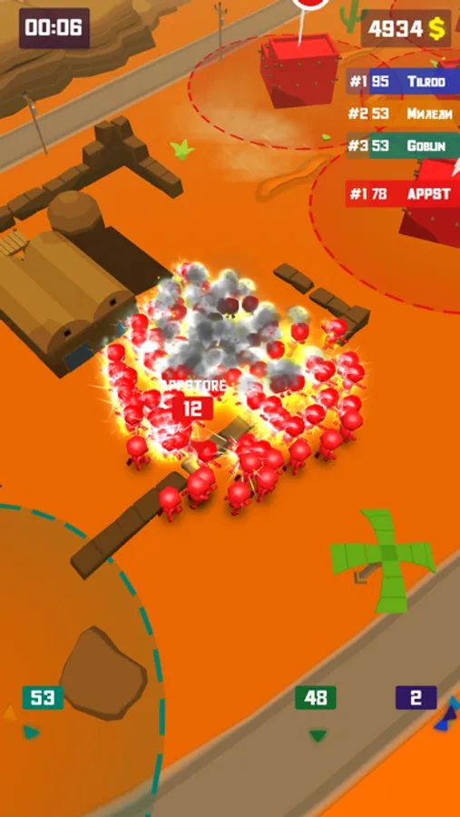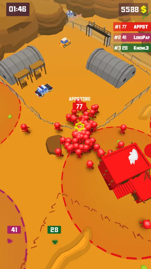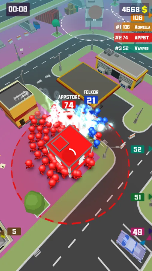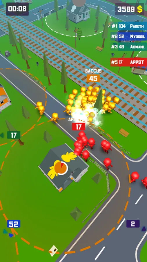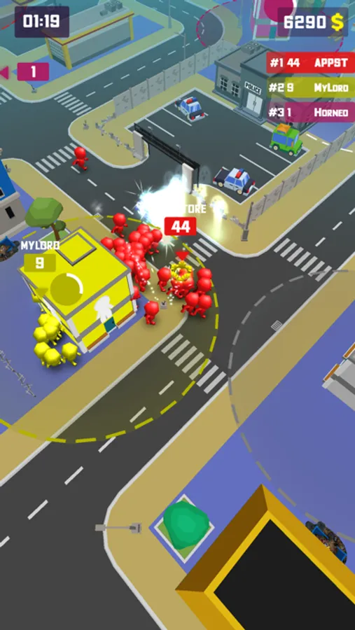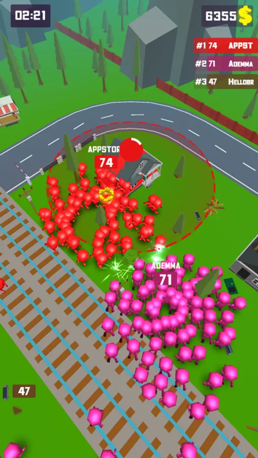 A three-dimensional arcade game in which the player will control a crowd of colored people. The main goal of each session is to destroy enemy units, for this you need to capture buildings. Buildings will increase the size of your crowd, which will increase the chances of a successful battle. In the process of moving around the locations, you should avoid enemy units with a larger number, as they have a higher probability of victory. Also, the user will be able to improve buildings and their units, which will make them more deadly.