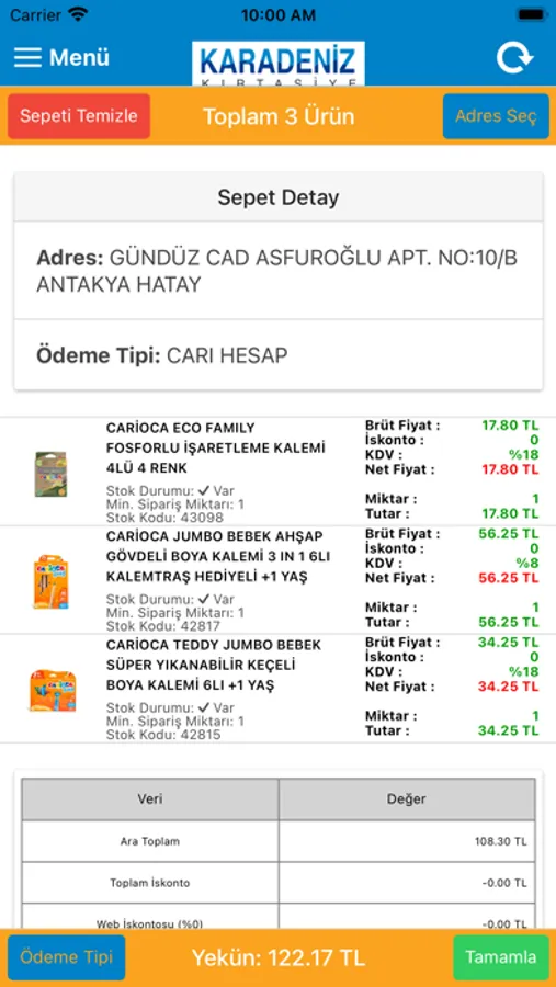 Karadeniz Kırtasiye B2B Sisteminin Web Adresi: http://b2b.karadenizkirtasiye.com.tr