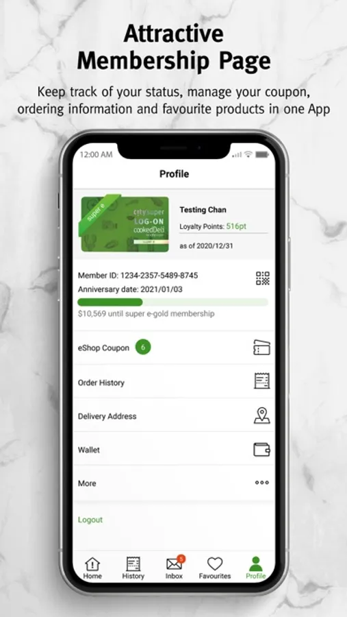 Keep track of your status, manage your coupon, ordering information and favourite products in one App.