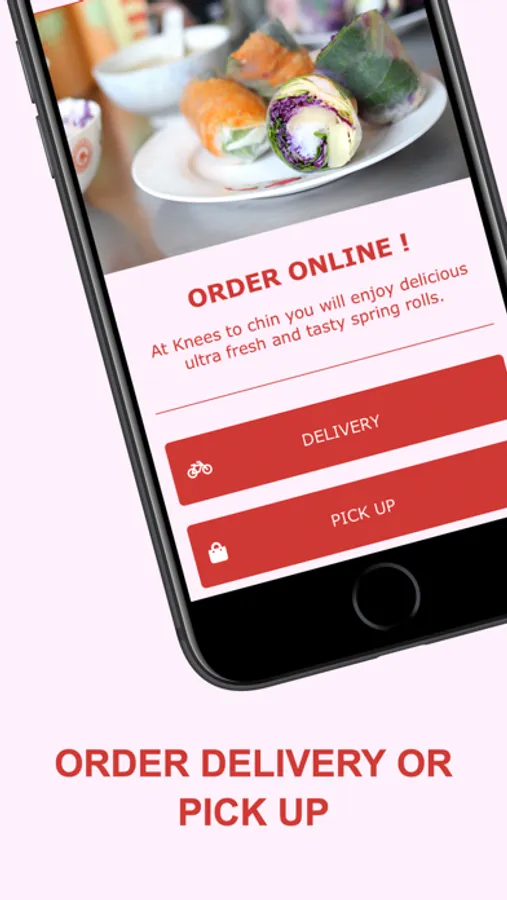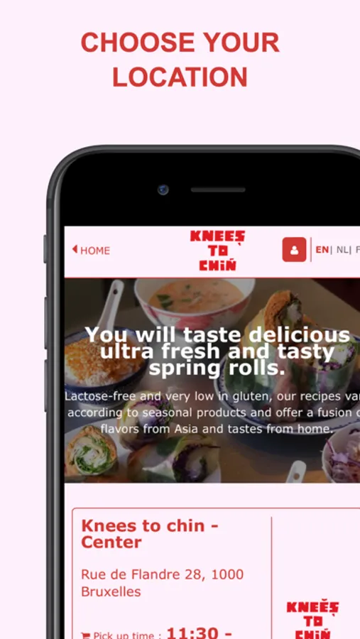 Wherever you are, with the Knees to chin app, you can easily order your favourite ultra fresh and tasty rice paper rolls for lunch or dinner!