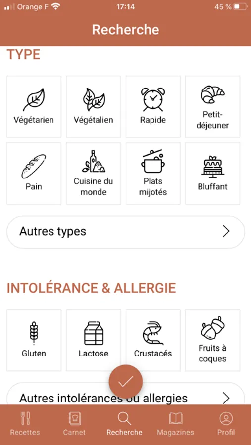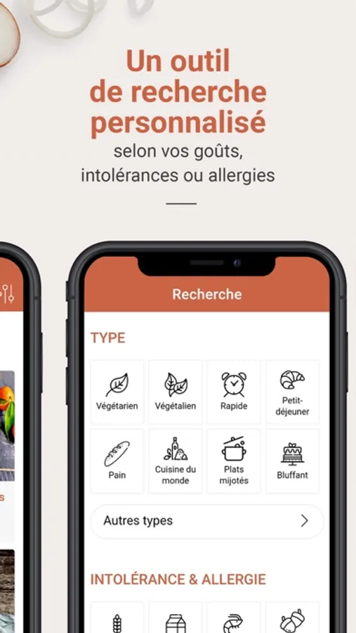 Trouvez de délicieuses recettes adaptées à vos goûts, mais aussi à votre régime alimentaire, grâce à de nombreux critères (intolérances, allergies, végétarien, cuisine d’ailleurs,…). Vous ne manquerez plus jamais d’inspiration !