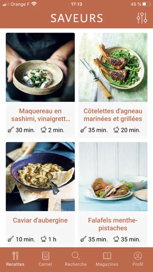 N’attendez plus pour vous régaler, LA NOUVELLE APPLICATION SAVEURS EST DISPONIBLE ! Véritable passionné, novice en quête d’idées ou gourmet expérimenté, une multitude de recettes vous attendent. Des recettes gourmandes, simples et de saison des magazines Saveurs, toutes testées et approuvées par la rédaction.