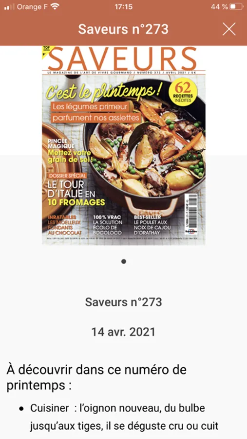 Tous vos magazines préférés réunis au même endroit ! Achetez et feuilletez vos magazines Saveurs, Saveurs Green, Saveurs Thermomix et Saveurs Simplissime, directement depuis l’application. Il n’a jamais été aussi simple de vous rendre chez votre marchand de journaux !