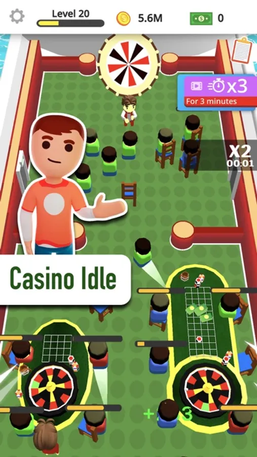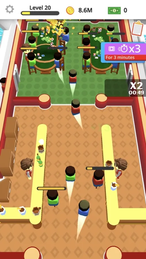 Earn money by selling cocktails and arranging more seats! Unlock the most amazing casino floors and machines.