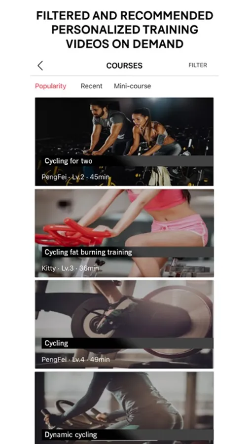 - Filter based on personalized intensity levels, duration, coaches etc.