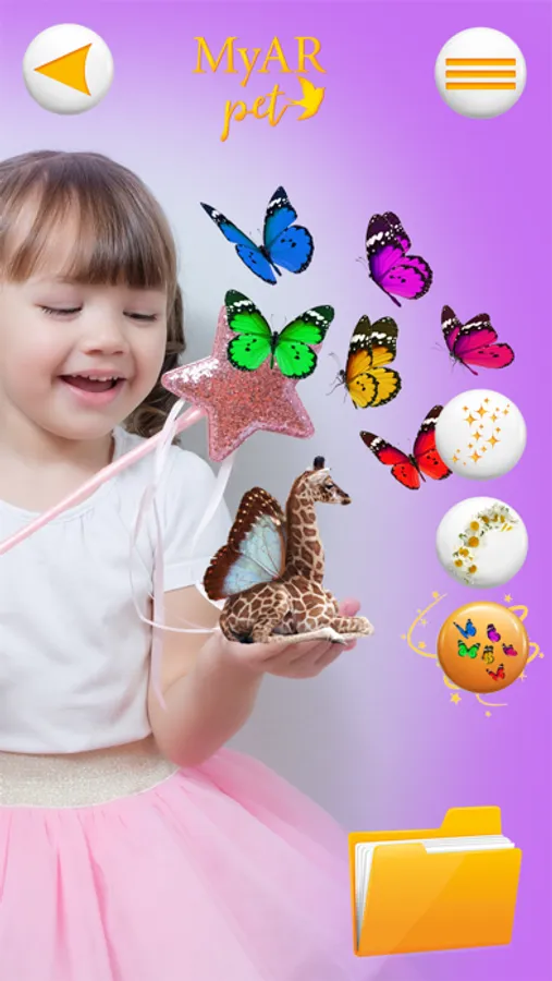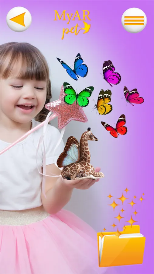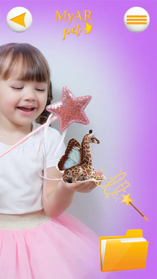 Free the enchanting MyAR Pet in to your life, swipe the magic wand and photograph the beautiful fairytail world around you!