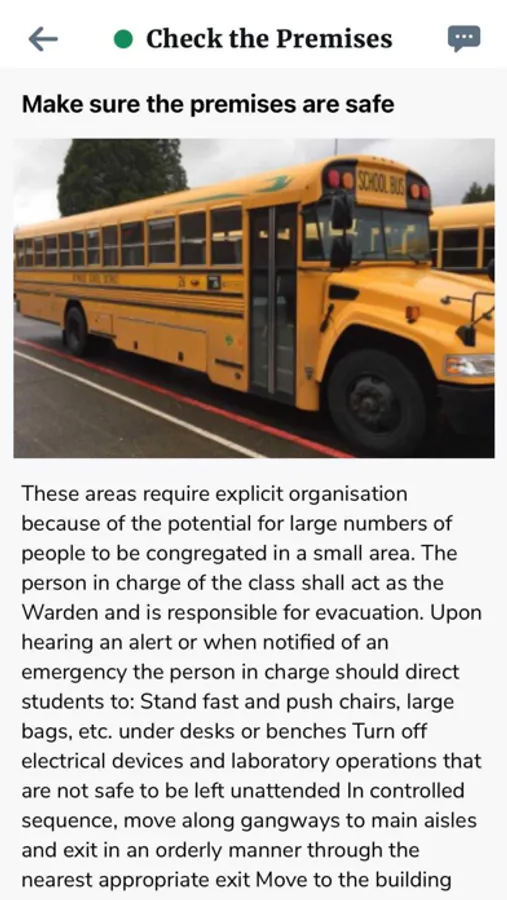 An Emergency Safety app designed to help school and business staff respond safely and effectively during drills and emergencies. The various components of the app address different safety needs including step-by-step emergency response procedures using the following features: