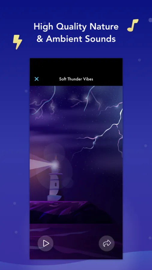 Choose from different ambient soundscapes like rain, nature, city, ocean, and listen with animation.