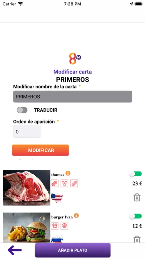 Cada día tendrás el menú i/o carta actualizada en tu móvil. Y en cada plato, habrá los alérgenos, precio i descripción.