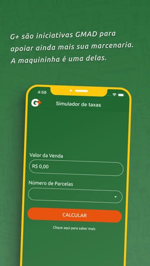 G+ é iniciativas GMAD para apoiar ainda mais sua marcenaria. A maquininha é uma delas. Uma opção prática e competitiva de parcelamento a seu cliente e o recebimento do seu serviço à vista.
