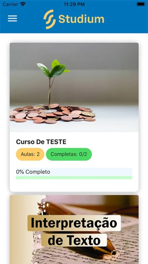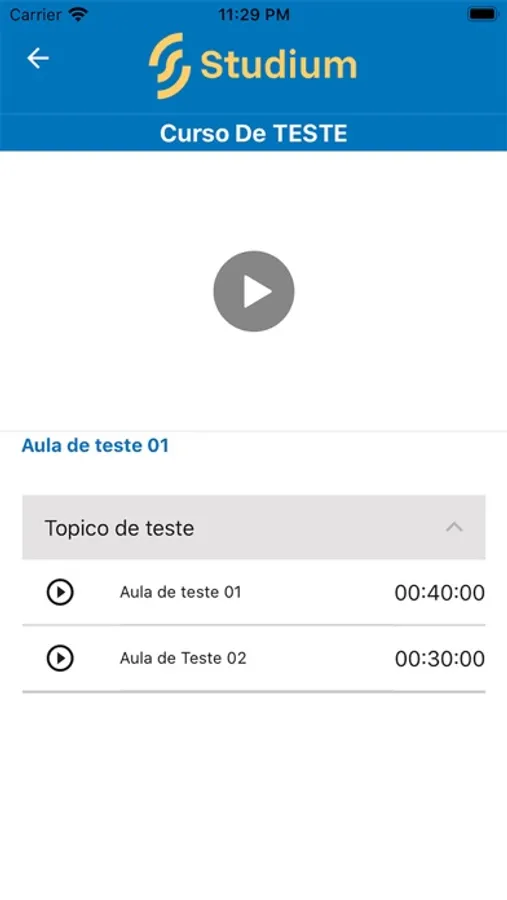 App para acompanhamento das aulas da plataforma Studium Cursos.