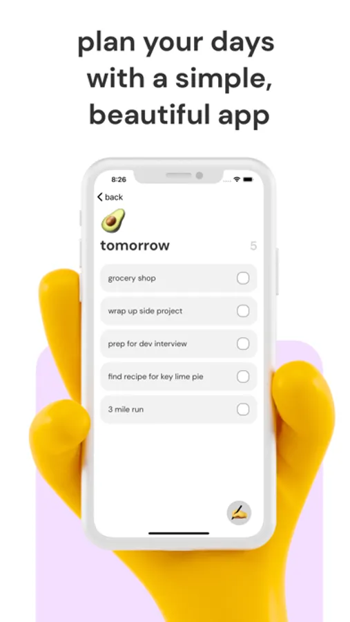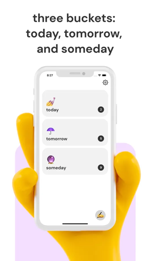 someday is an app for those of us taking it one day at a time. it separates your life into three buckets: today, tomorrow, and someday. with a simple design and fun interactions, you will be able to organize your upcoming tasks without unnecessary complexity.