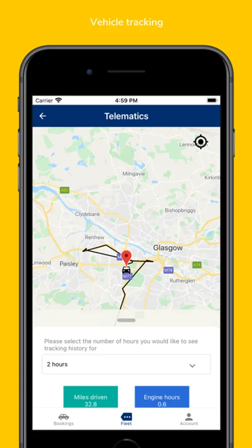 View your vehicle’s current location, additional vehicle information and also get directions to open maps to navigate to the vehicle