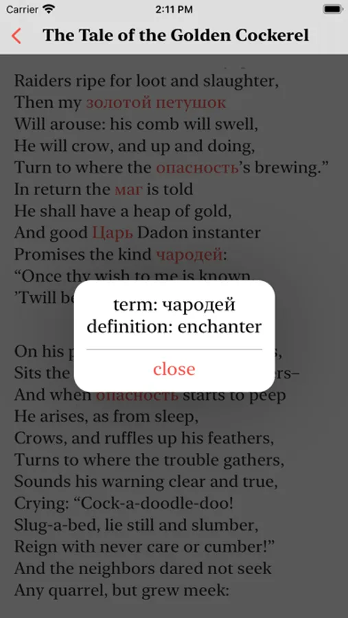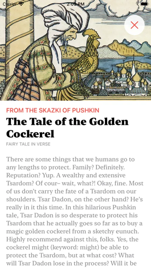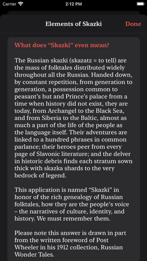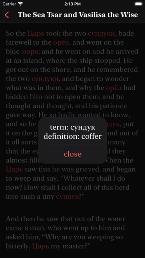 Through the Diglot Weave and TPRS (Teaching Proficiency through Reading and Storytelling) blended language learning techniques, Skazki teaches users to elevate their Russian vocabulary, pick up on the patterns of Russian cases, and notice how certain Russian words are inherently intertwined with culture. Skazki is intended to supplement traditional Russian language learning.