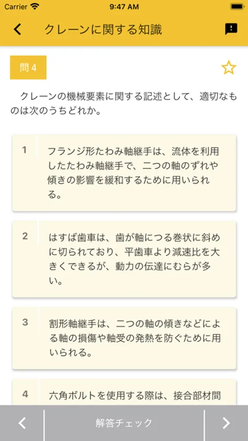 クレーン・デリック運転士 資格試験の2020年10月公表の過去問題をクイズゲーム形式で学べるようにしたアプリです。