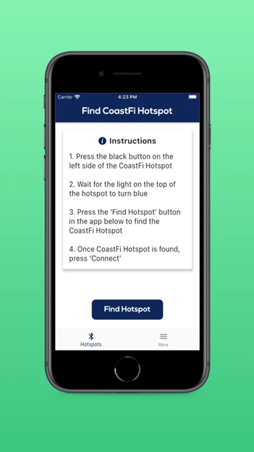 The CoastFi App enables users to configure and authenticate WiFi connection on their CoastFi Hotspot.