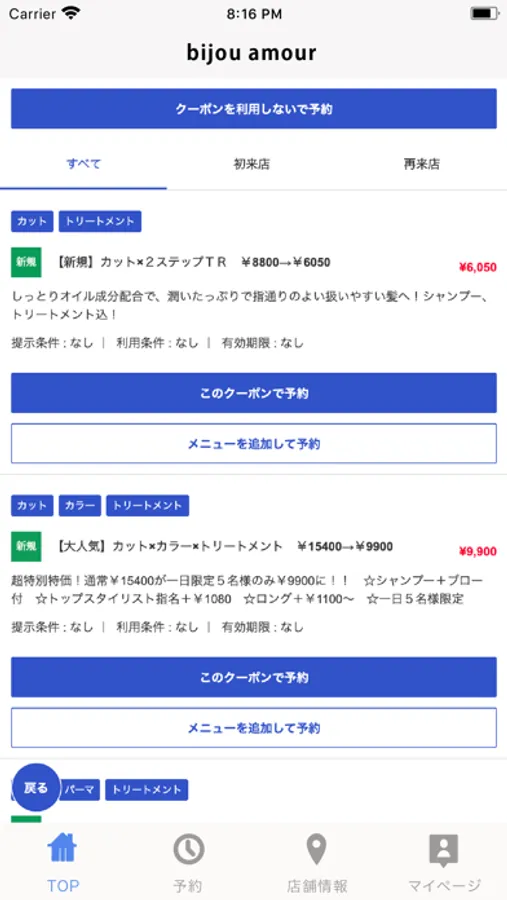 お得なクーポンが配信されます。ネット予約時にクーポン利用での予約も可能なので来店時もスムーズに施術頂けます。